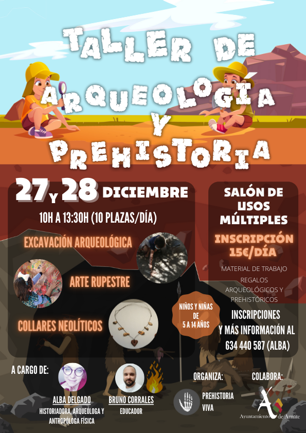 Talleres que abarcan todas las etapas de la Prehistoria. Aprenderán como vivían los Seres Humanos primitivos y se convertirán en verdaderos arqueólogos/as